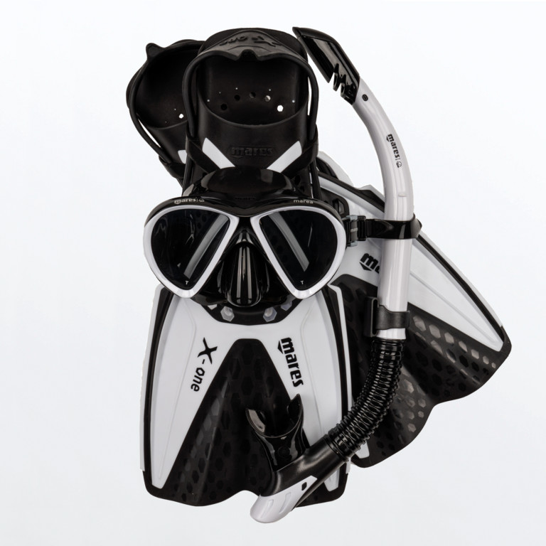 Il Set X-One Marea per adulti unisce la maschera per snorkeling Marea, pinna X-one e boccaglio ergonomico.
