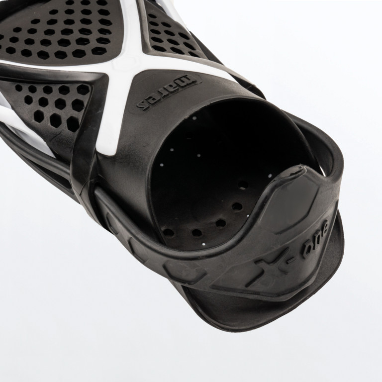 Le pinne X-One vantano una comoda regolazione con cinghiolo senza fibbie e sono perfette per lunghe sessioni di snorkeling. La scarpetta è traforata e lascia fluire l’acqua per evitare effetto paracadute.