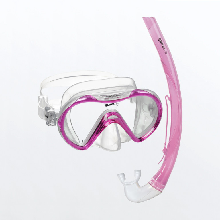 Combo Seahorse è la combinazione maschera e snorkel per bambini dagli 8 ai 14 anni, che amano praticare lo snorkeling in sicurezza e divertimento. Nella combo Seahorse è compresa una maschera Seahorse in siliter con fibbie di regolazione sul facciale facili da utilizzare. La lente ha un ampio raggio di visione verso il basso. Lo snorkel ha una struttura curva ergonomica. Il reggi snorkel è integrato. Il boccaglio è in morbido in siliter, ideale per i bambini.