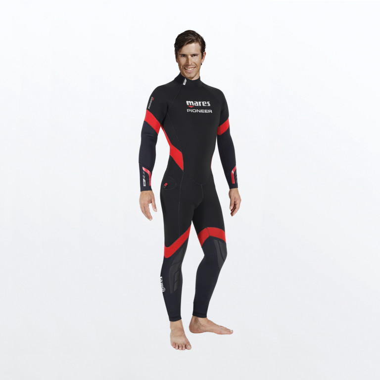La muta da sub Pioneer 5mm da uomo è una muta umida per acque temperate in Neoprene & Ultrastretch Neoprene che garantisce comodità, facilità di vestizione e comfort. Il design è ora più moderno in pannelli di neoprene colorato rosso per la Pioneer 5mm da uomo.