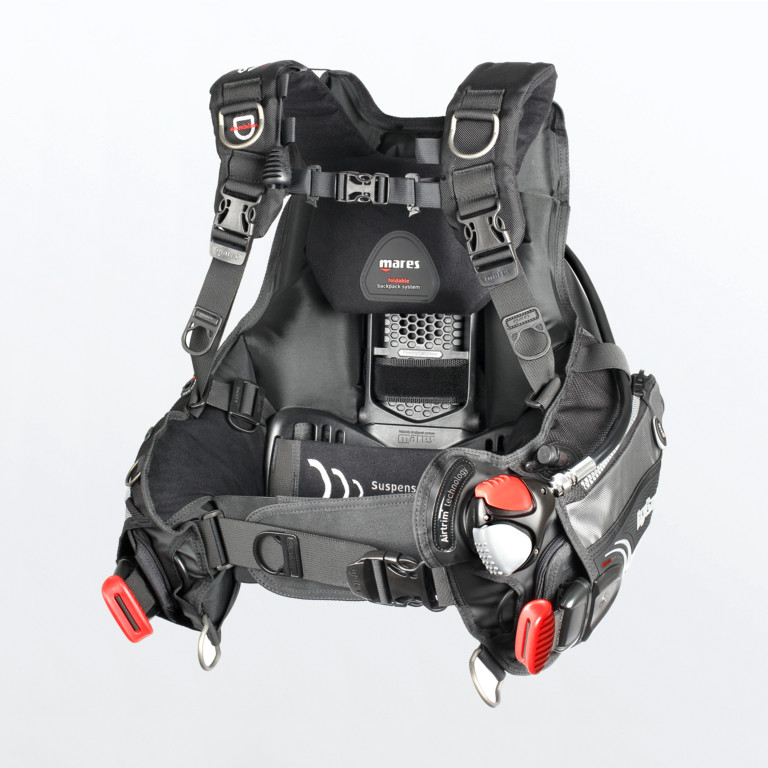 Questo gav è dotato di sistema Air Trim, brevettato Mares con valvole pneumatiche permettono di gonfiare e sgonfiare il jacket, indipendentemente dalla posizione in acqua.