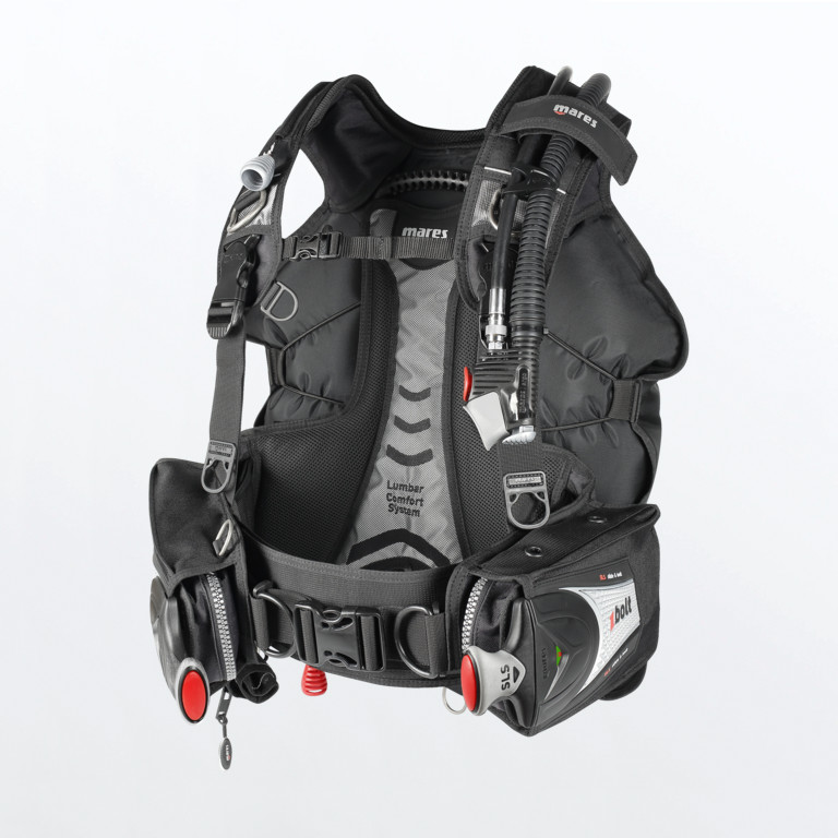 La chiusura ventrale a fascione regolabile, anziché a semplice nastro, e il sistema zavorra montato sull’estensione del copri schienalino, fanno del gav Bolt SLS una soluzione davvero di alta gamma, capace di accontentare anche i sub più esigenti.