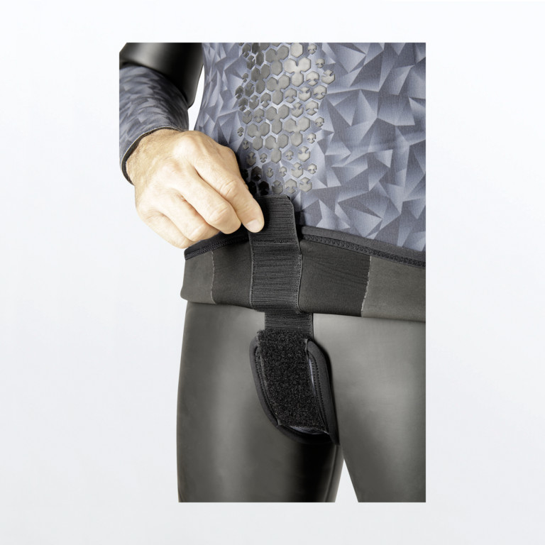 Un taglio preformato assicura comfort e una vestibilità eccellente con un cuscinetto toracico antiscivolo con un "ammortizzatore" interno in neoprene. Il neoprene liscio intorno al viso offre un nuovo e confortevole design del mento e una nuova chiusura a coda di castoro in VELCRO® brand consente regolazioni perfette.