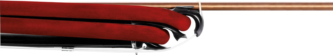 Scatola di sgancio in materiali compositi con grilletto, dente di sgancio e sgancia sagola laterale ricavati dal pieno. L’ammortizzatore di battuta rende silenzioso lo sgancio dell’asta.