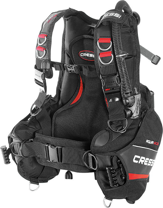 Il sistema di pesi integrati Cressi Flat-Lock-Aid Weight System rende estremamente semplice lo sgancio delle tasche tasche di zavorra.