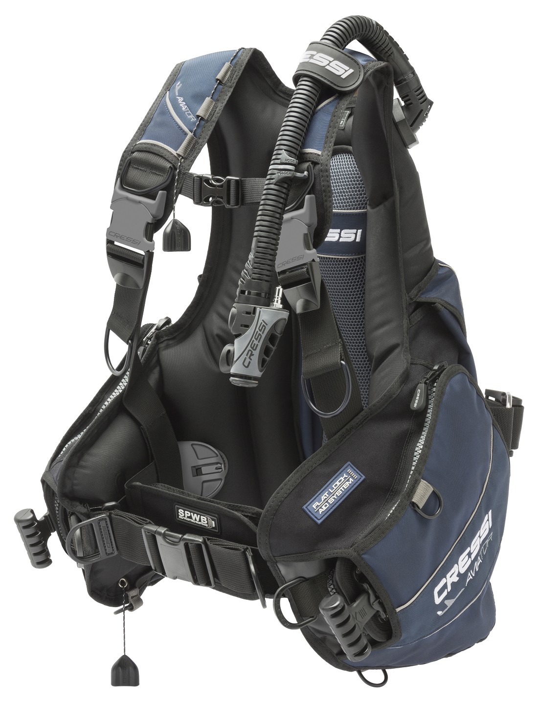 Lo speciale materiale air-net negli spallacci e nello schienalino garantisce un maggiore comfort e drenaggio dell’acqua. Il sistema di zavorra integrato Flat Lock Cressi rende molto facile l’estrazione dei borselli portapiombi.