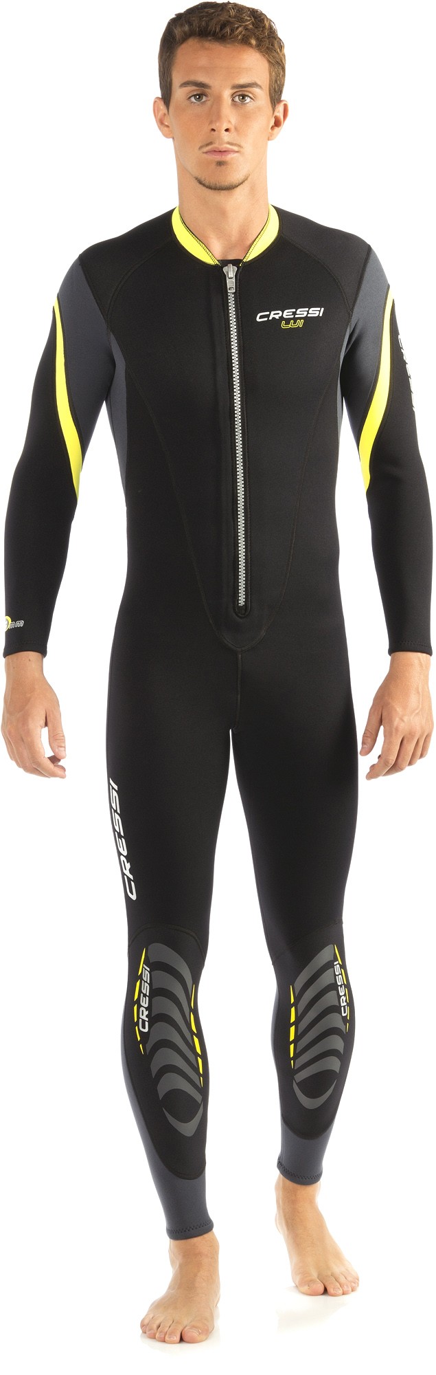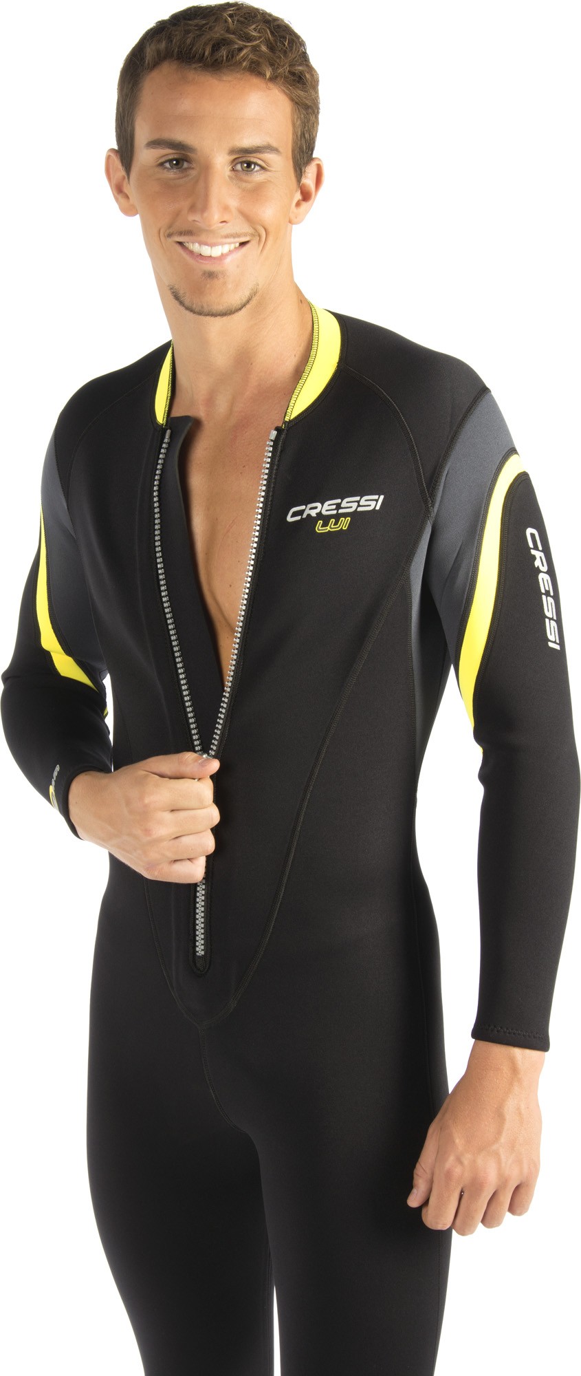 La cerniera anteriore permette di indossare e togliere la muta in modo agevole e autonomo.