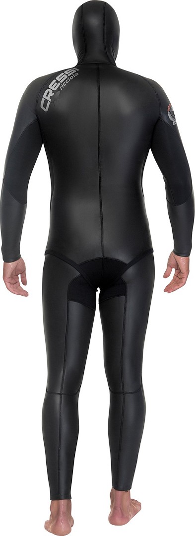 La muta si avvale di un pannello sottoascellare che facilita il comfort e la vestibilità. Il design è rigorosamente anatomico. Rinforzi di protezione su sterno, ginocchia e cavallo. Guarnizioni stagne in neoprene liscio su cappuccio, polsi e caviglie.