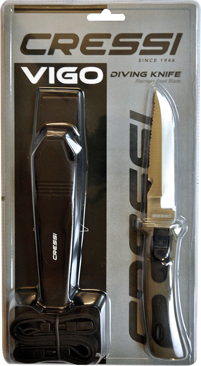 Coltello medio, piatto ed ergonomico, dotato di un sistema di fissaggio/sgancio rapido che evita la perdita accidentale, grazie al fatto che, per estrarre il coltello dalla custodia, bisogna premere simultaneamente due pulsanti. Impugnatura minimalista, dalla sezione ultrapiatta ed ergonomica, rivestita di gomma antiscivolo per una presa sicura. La lama è realizzata in acciaio temprato inossidabile 401. La durata delle prestazioni è garantita non tanto per l’affilatura quanto per la qualità del materiale che assicura la durevolezza del filo. Sezione romboidale della lama per una maggiore resistenza alla flessione e alla rottura. Un lato è liscio e l’altro parzialmente dentellato con tagliasagola. Può essere fissato al polpaccio con cinghioli di gomma e fibbie oppure alla cintura.
