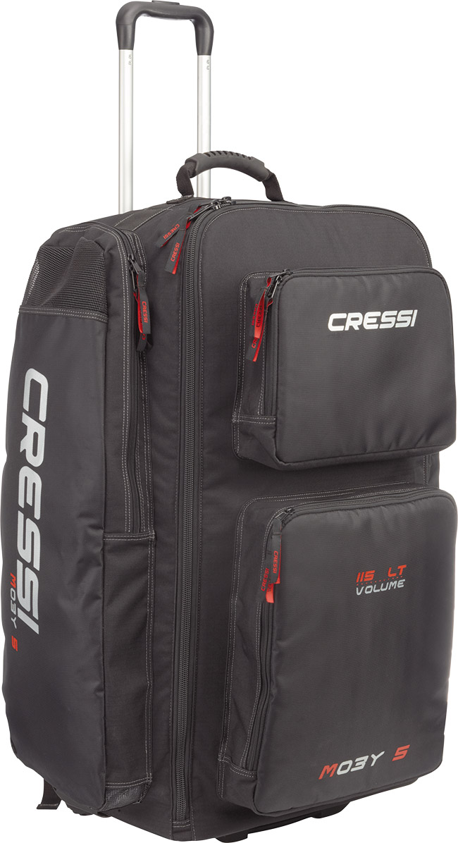 La borsa da immersione con ruote Cressi Moby 5 è stata progettata per i subacquei in movimento, per l'impugnatura di aeroporti, pontili per barche e altre situazioni. Questo trolley da 115 litri è realizzata in materiale 300/400 denari, incredibilmente resistente ma leggero.