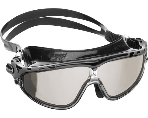 Occhialino/Maschera monofacciale per il nuoto e gli sport acquatici con un design moderno, aggressivo e molto idrodinamico, studiato per consentire al nuotatore di poter disporre di un ampio campo visivo.