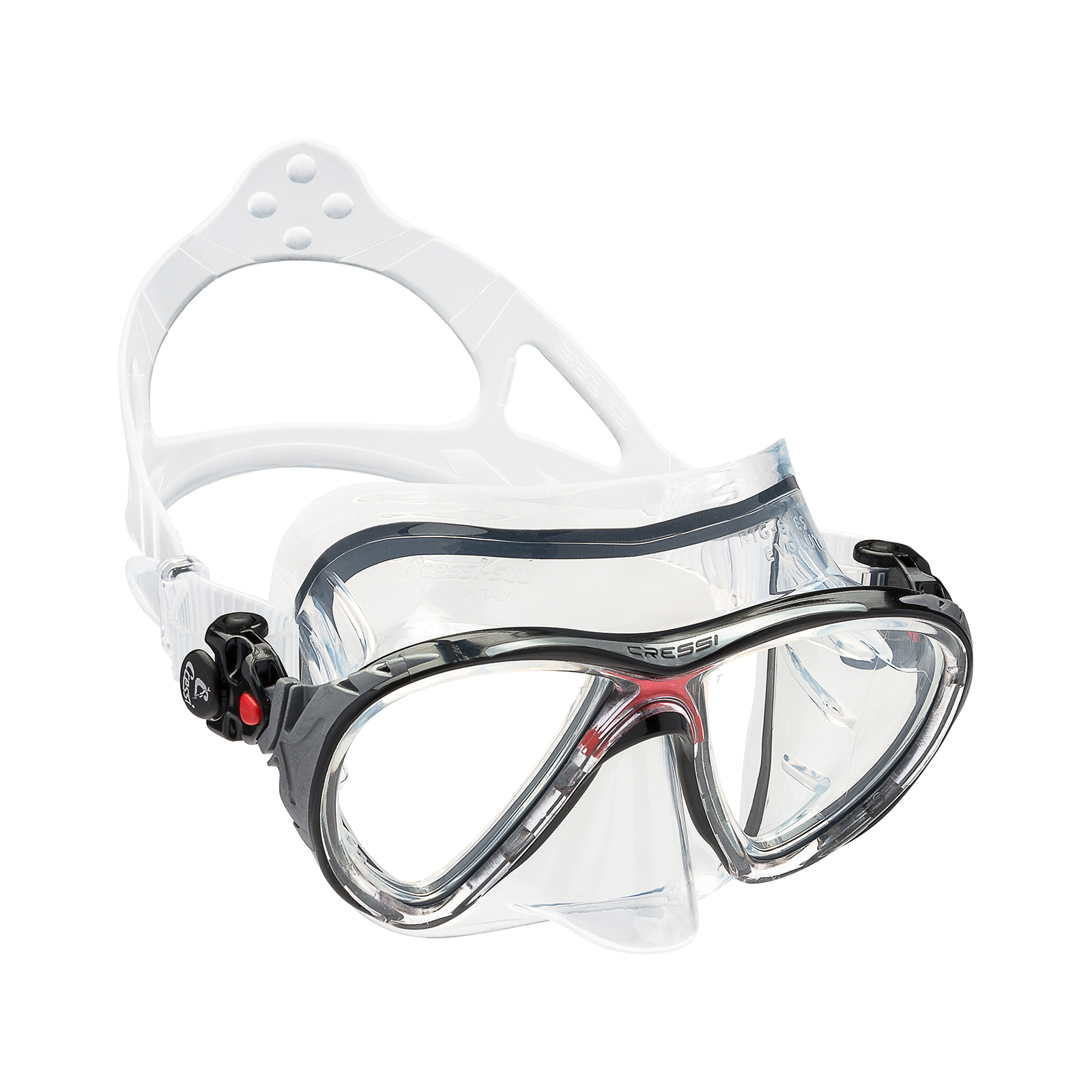 Si avvale dell’esclusivo sistema Cressi (brevettato) di duplice iniezione di un elastomero su un elemento rigido. Lo spessore è stato ridotto ed è tale da scomparire completamente alla vista, a maschera indossata.