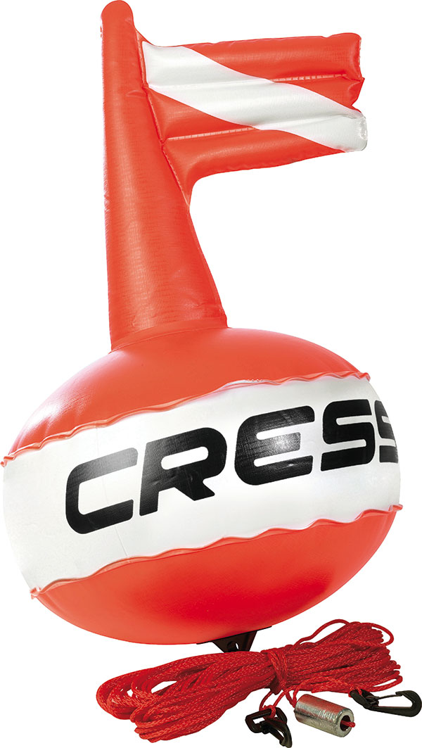 Boa di forma sferica, leggermente appiattita per offrire una minore resistenza al vento e dotata di bandiera gonfiabile incorporata.