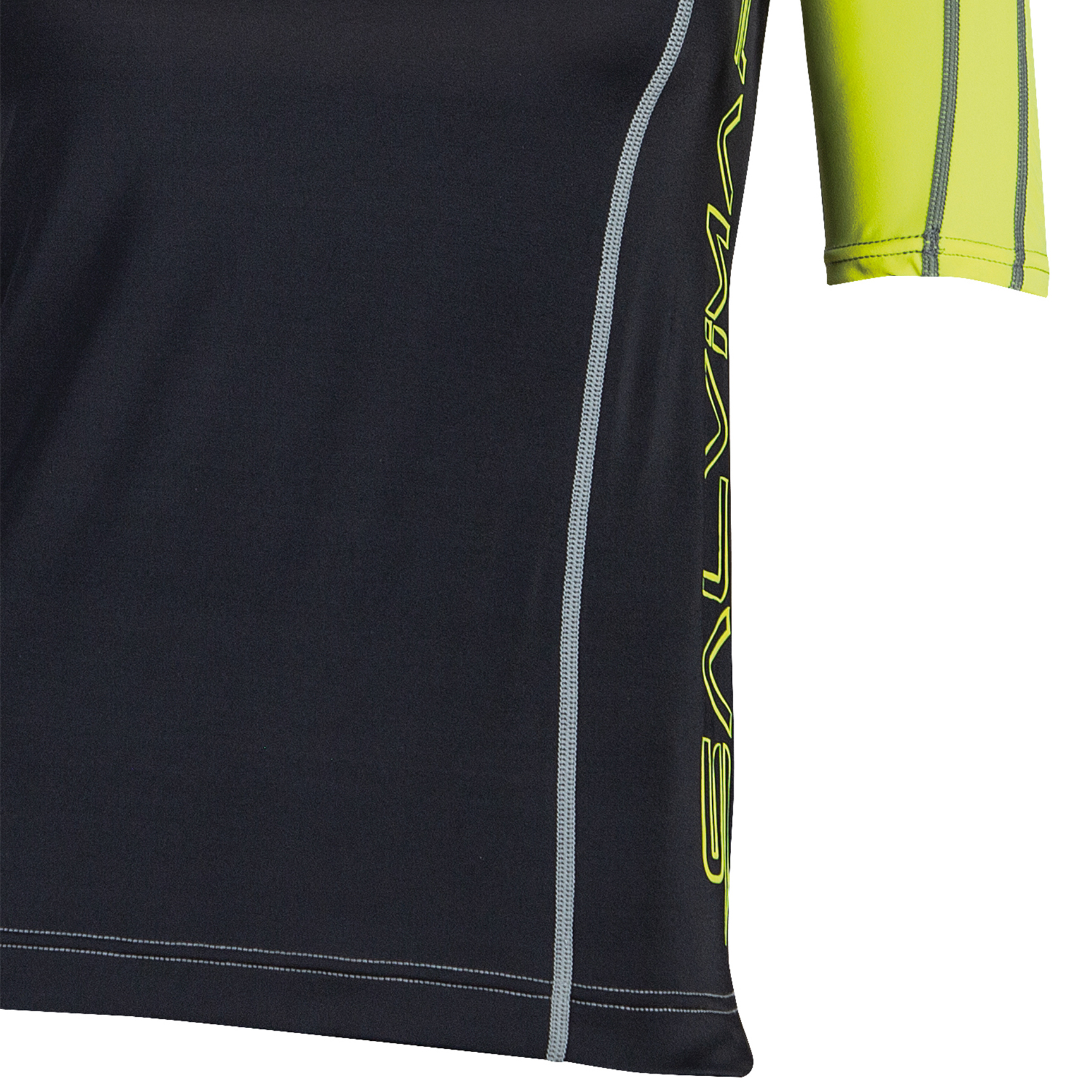 Realizzata con una composizione di nylon al 80% e spandex al 20%, questa rash guard offre una protezione UV 50 per una sicurezza ottimale sotto il sole. Il suo taglio anatomico assicura un'ottima vestibilità e comfort durante l'attività. Inoltre, la presenza di una striscia interna in neoprene liscio migliora l'aderenza e previene lo scivolamento durante l'uso.