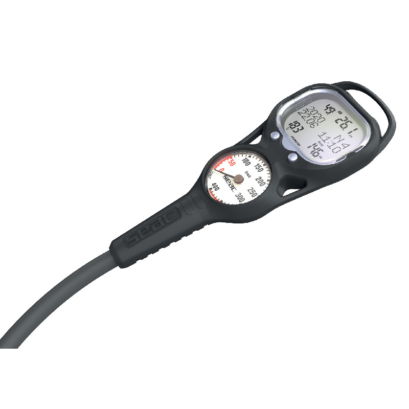 Anche con guanti molto pesanti è facile gestire tutte le funzioni di Seac Screen, grazie ai due pulsanti frontali ben definiti. Il manometro è disponibile sia con scala in BAR sia in PSI.