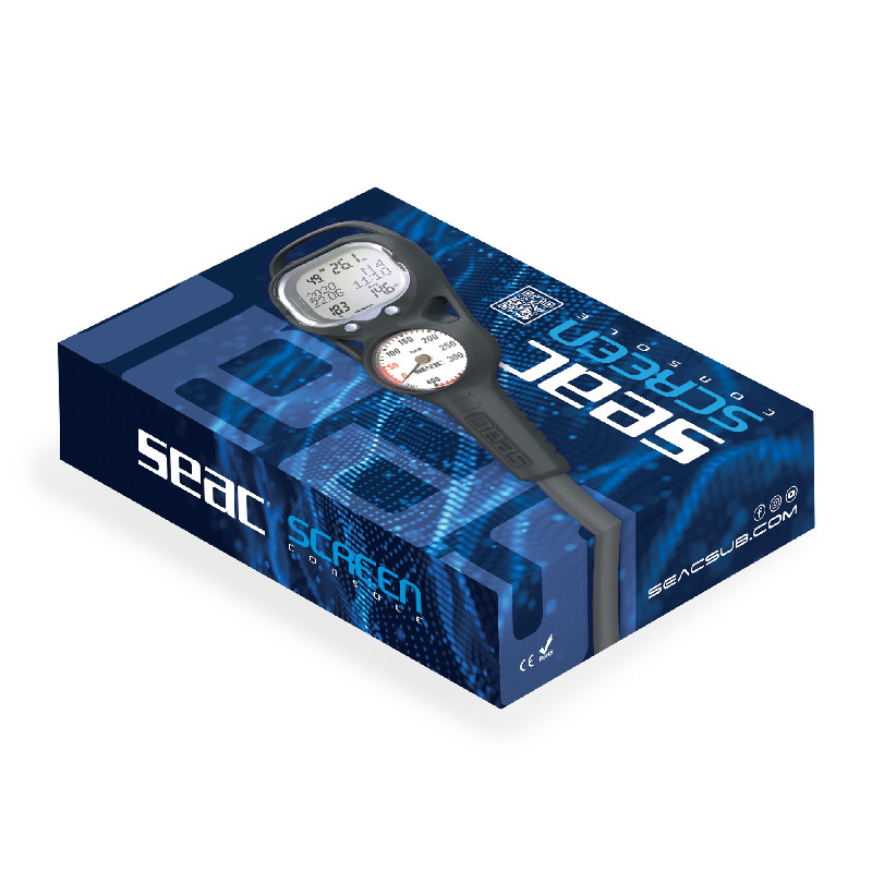 Seac Screen è il computer subacqueo che punta alla chiarezza e alla facilità di lettura di tutti i dati relativi al profilo d’immersione. L’ampio display mostra tutte le informazioni utili in una sola schermata, con caratteri ben leggibili e distinti. Contrasto e luminosità possono essere regolati, così come la modalità (automatica o manuale) e il tempo di retro illuminazione (da 2” a 60”). Il display misura 4x4,7cm ed è protetto da una robusta scocca rivestita in gomma. Dimensioni totali quadrante 6,7x7cm. Il cinturino è lungo ed è pensato per allacciare comodamente Seac Screen anche sopra una muta stagna. Lunghezza totale, dalla fibbia all’estremità opposta: circa 36 cm. I due pulsanti frontali ben definiti permettono di utilizzare Seac Screen in modo facile e veloce anche guanti molto pesanti. Seac Screen opera in 3 modalità principali: Scuba, Gauge e Free. In modalità Scuba il profilo d’immersione è automaticamente gestito secondo l’algoritmo di decompressione Bühlmann ZHL-16C. Supporta la gestione di 1 o 2 miscele (aria, Nitrox e altre miscele con O2 fino al 99%) avvisando l’utente nel momento più idoneo per effettuare il cambio. Allarmi sonori e luminosi in caso di violazione della tappa di decompressione, di eccessiva velocità in risalita e di superamento della profondità massima consentita con le miscele in uso. In modalità Gauge il computer Seac Screen mostra profondimetro e cronometro per una gestione dell’immersione in totale autonomia da parte dei subacquei più esperti. In modalità Free chi pratica apnea può visualizzare tempi di superficie e di tuffo, profondità attuale e profondità massima raggiunta durante la sessione. Il Planner di immersione di Seac Screen consente di simulare e pianificare un’immersione visualizzando il tempo di NDL in base alla profondità impostata e agli altri dati di input (miscela, PpO2 massima, livello di prudenza di calcolo dell’algoritmo). Il Logbook memorizza fino a 40 ore di immersione in modalità Scuba/Gauge o 18 ore in modalità Free. Dati scaricabili e aggiornamento software con cavo USB-C e applicativo Seac Dive Manager scaricabile gratuitamente sul sito Seacsub.com. Il cavo USB-C può essere incluso o meno nella confezione a seconda del package acquistato. Seac Screen funziona con una batteria CR2450, non ricaricabile. Può essere sostituita dall’utente ma si consiglia comunque di rivolgersi a un centro autorizzato Seac per cambiare anche l’o-ring originale del vano batteria. Altro: profondità massima 100 metri, calcolo tempi di NoFly e Desaturazione, avviso altitudine massima concessa, selezione acqua dolce o salata. Seac Screen è disponibile anche in versione console abbinato a un manometro.