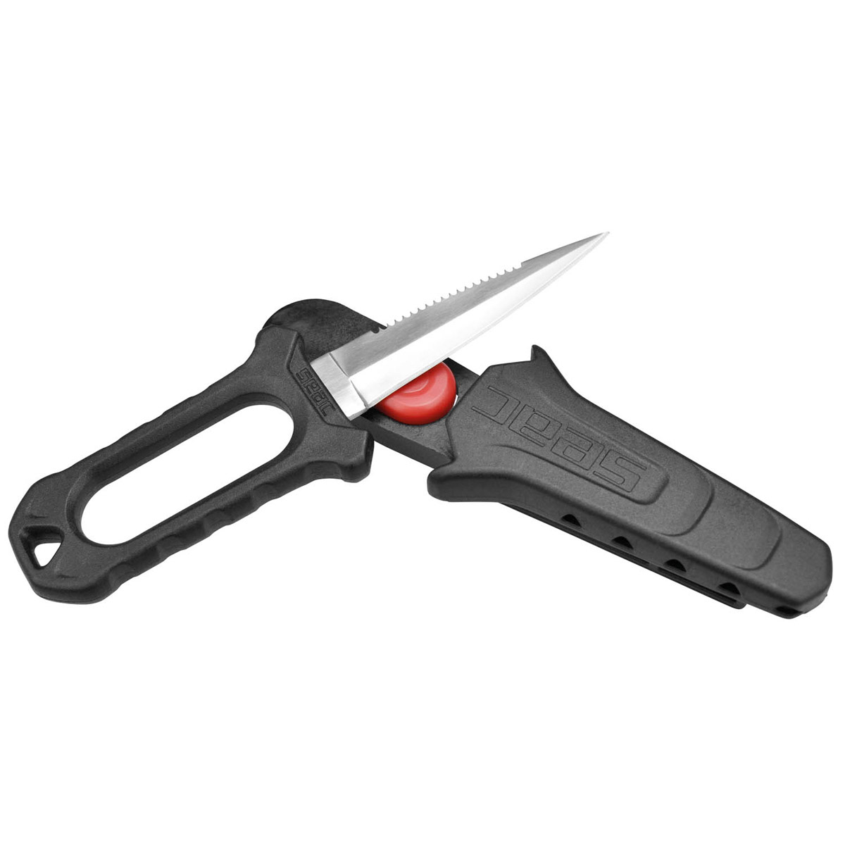 Seac Devil HD è il coltello subacqueo di Seac adatto per Snorkeling, Apnea e Pesca Subacquea. La lama in acciaio Inox a forma di stiletto è stata progettata specificamente per la pesca subacquea. Ottima penetrazione e capacità di taglio sia sul bordo diritto che su quello seghettato. Venduta con fodero con sistema Push & Pull Out per una facile azione con una sola mano, anche indossando i guanti. All'estremità dell'impugnatura è presente un foro per il fissaggio della sagola.